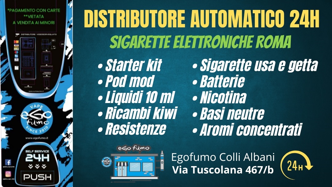Se cerchi sigarette elettroniche ed articoli svapo nella zona di colli albani Roma segnaliamo eGofumo Colli Albani . Il negozio sigarette elettroniche Colli Albani del marchio eGofumo è il più grande svapo store di Roma. Nel punto vendita puoi trovare un’esposizione con più di 5000 articoli dove acquistare sigarette elettroniche,Starter Kit, batterie, pod mod, atomizzatori, sigarette elettroniche usa e getta con nicotina e senza nicotina, Kiwi pod, liquidi di qualsiasi genere ed in tutti i formati, liquidi scomposti, mini shot, aromi concentrati, basi neutre e boccette di nicotina. Egofumo Colli albani è leader nel settore della sigaretta elettronica e per ogni articolo svapo puoi contare sul miglior prezzo sul mercato. Il negozio multimarca tratta solo i  migliori marchi di sigarette elettroniche e tutte le settimane offre nuove offerte su hardware e liquidi. Nel negozio di sigarette elettroniche Colli Albani un personale esperto e qualificato ti guiderà sull’acquisto della migliore sigaretta elettronica per smettere di fumare più adatta al te.